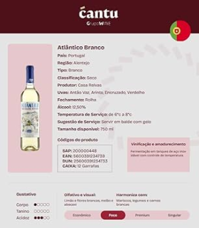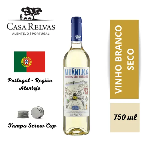 O Vinho Atlântico Branco é um vinho português da região do Alentejo, produzido pela Casa Agrícola Alexandre Relvas. Ele se destaca por sua acidez refrescante, aromas de frutas tropicais e brancas, e boa mineralidade.